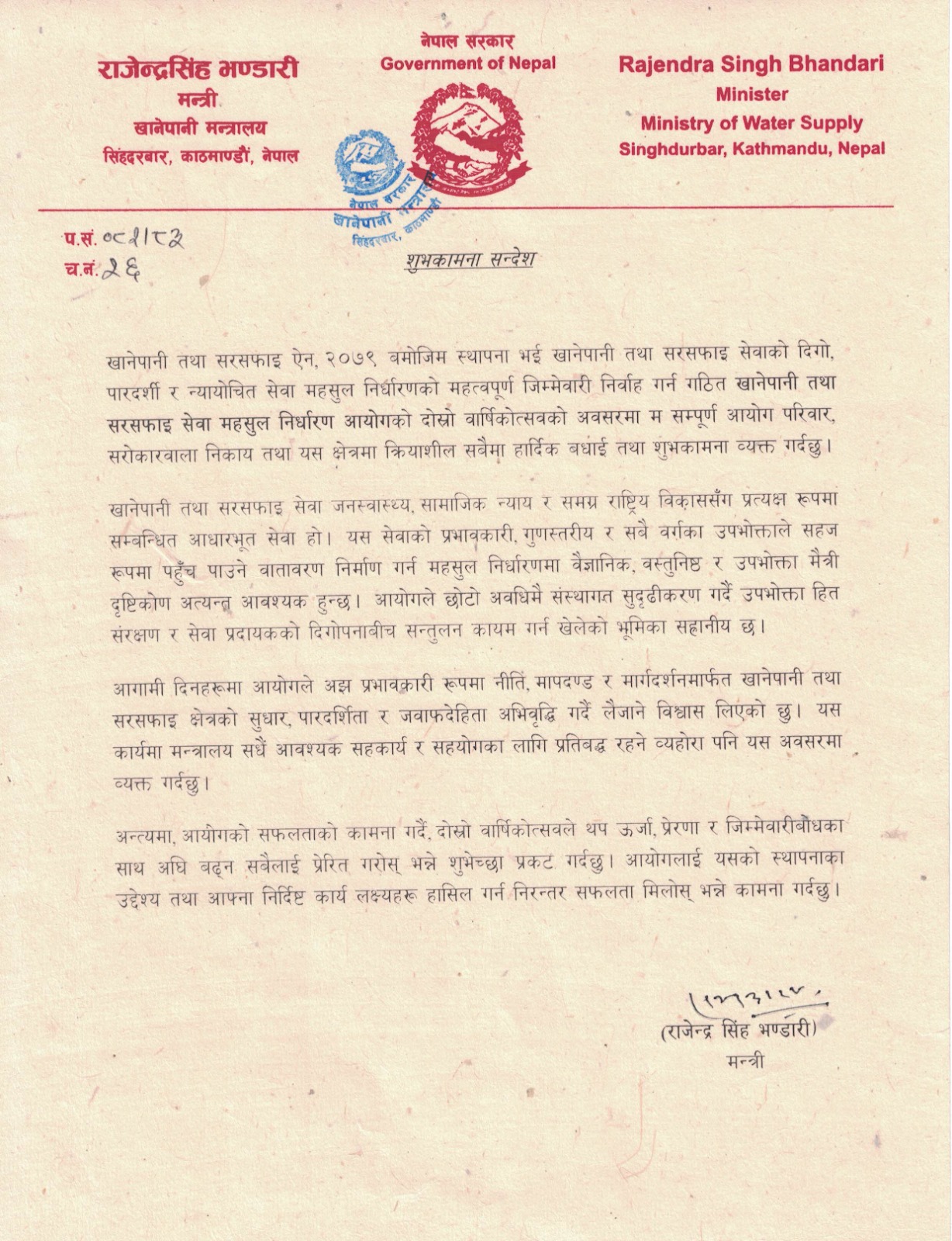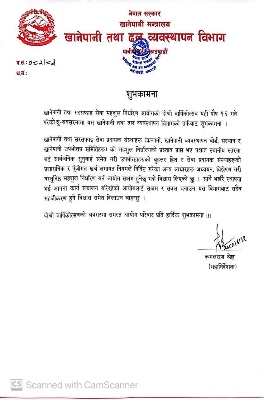 श्रीमान् सचिव ज्यूको शुभकामना